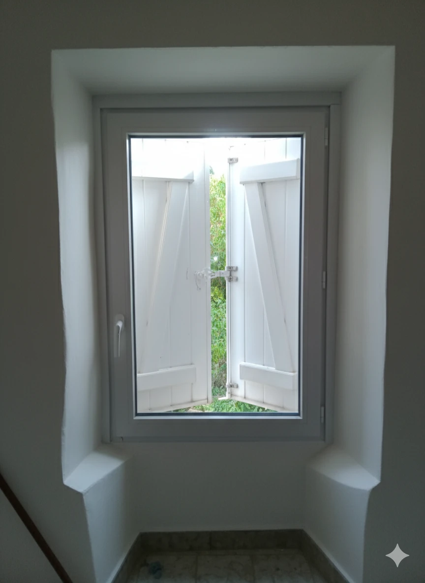 Travailler sur des bâtisses séculaires demande de la patience et de la précision. Le principal challenge ? Adapter des menuiseries neuves sur des murs très "tendus" et sans aucun aplomb. Grâce à une étude minutieuse et un savoir-faire d'ajustement, nous avons réussi une intégration parfaite, respectant l'âme de la maison tout en lui offrant un confort moderne et sans réduire la luminosité.